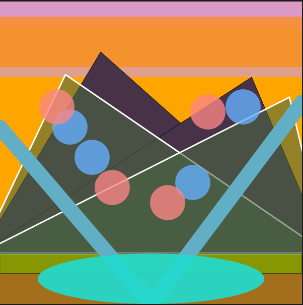 For my first blog post chronicling my journey in Intro to Computational Media, I must confess something. I am bad at drawing. I don’t know if it’s because I haven’t practiced enough or my brain cannot get my hands to cooperate with my mental image. In any case, I avoid drawing realistic things because they will not look realistic, no matter how hard I (reasonably) try. As a child and still now, I gravitate toward making abstract shapes. I litter the page with them, cluttering the paper with squiggles, circles drawn over each other, triangles appearing out of chaos, etc. I draw them in such a frenzy because I am trying vigorously to convey how I feel visually but struggle to make it concrete.