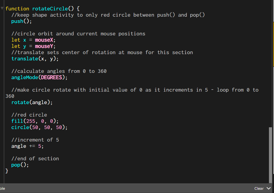 I went through and refactored the code into separate functions for each shape and clear comments. Here’s what it looks like now: