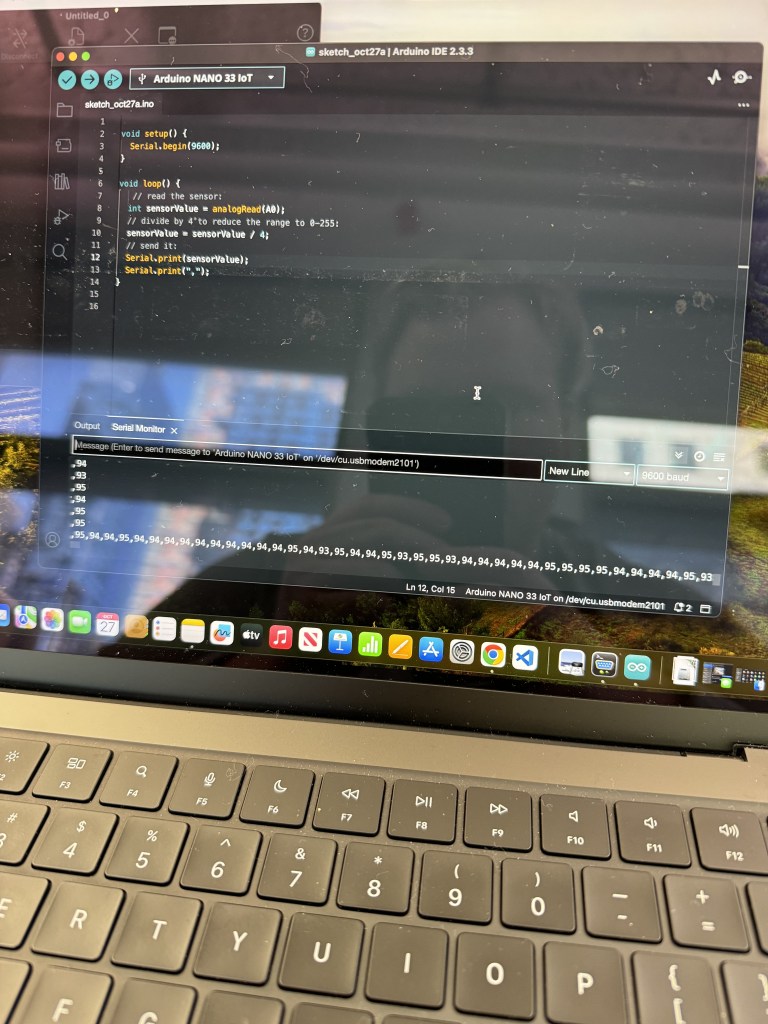 The reminder that only program can use the Serial port at a time was a helpful one. I had to toggle between checking on things in the Serial Monitor and checking on P5 in the browser. It was cool to experience the different iterations and ending up learning how to smooth out reading the input in Arduino and P5.