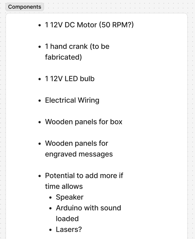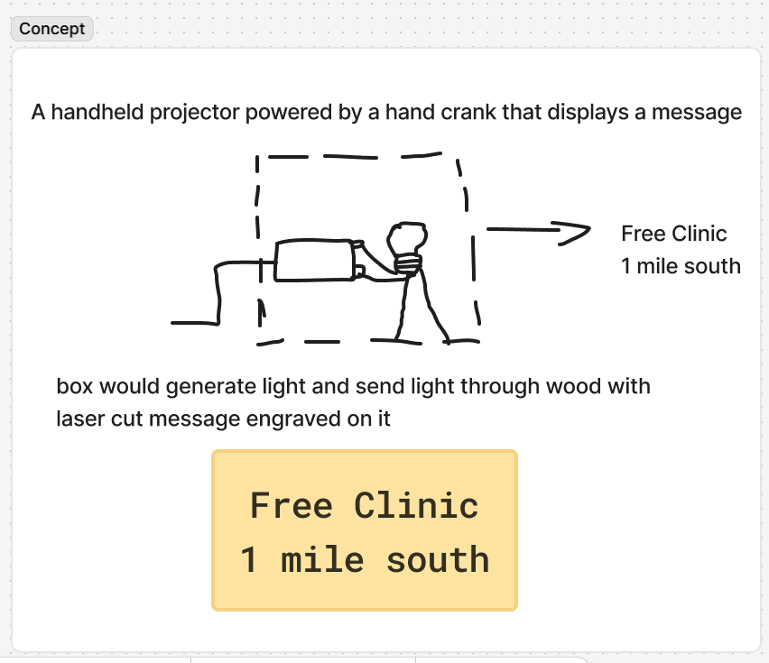 We particularly had a lot of interest in old analog cameras that had to be cranked in order to capture images. We wanted to do the opposite: how can we send an image with low energy? For now, we want to focus on text with light in order to establish using light for communication. This feels achievable in the next two weeks.