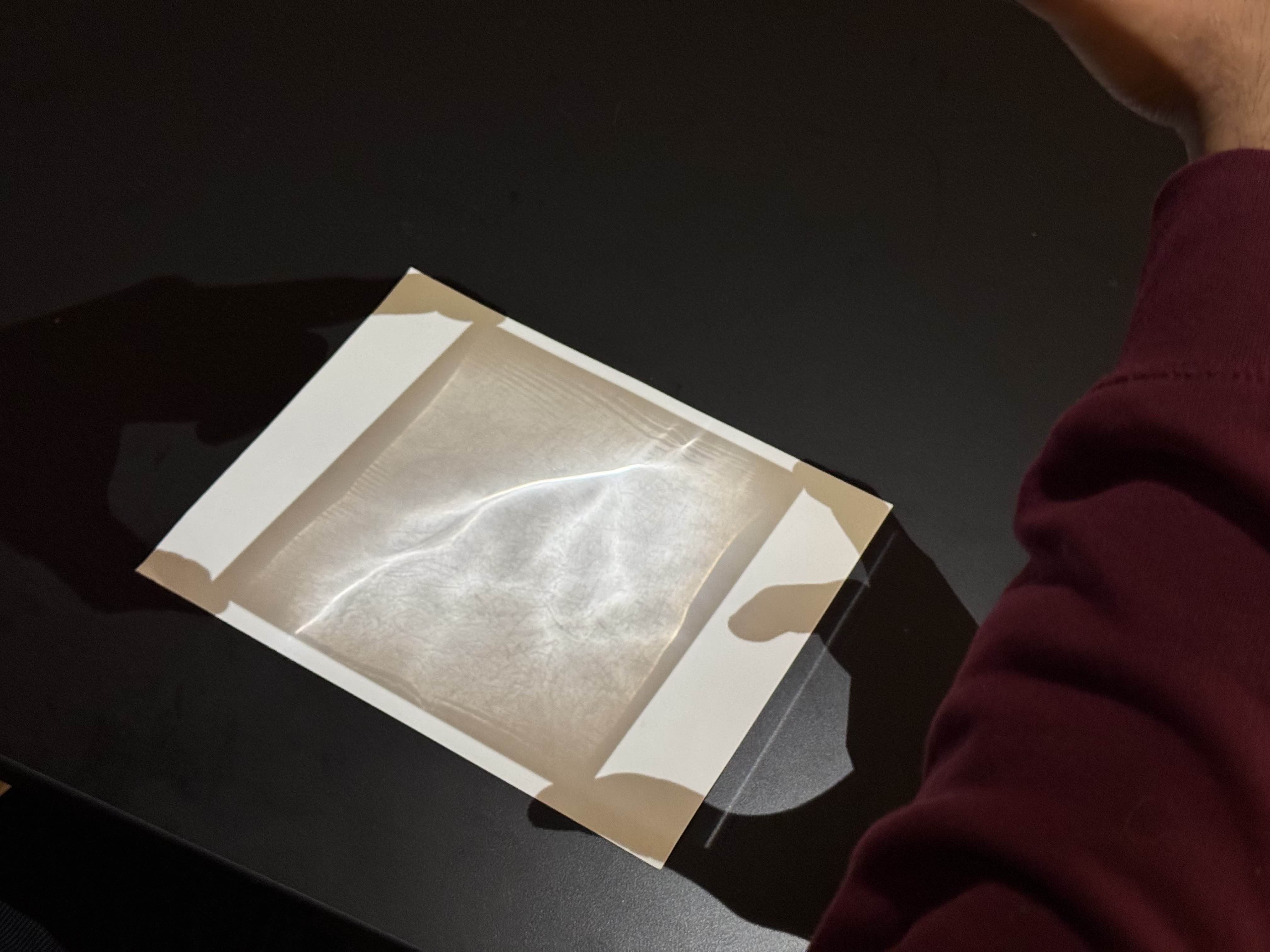 We went back to the floor, and we both took turns sanding, running water over the lens in a sink, and sanding again. We did our sanding passes and then polished the lens with automotive polish. We were worried all this time, effort, and labor would result in failure to make a proper lens. However, that was not the case. We achieved the lens (somewhat).