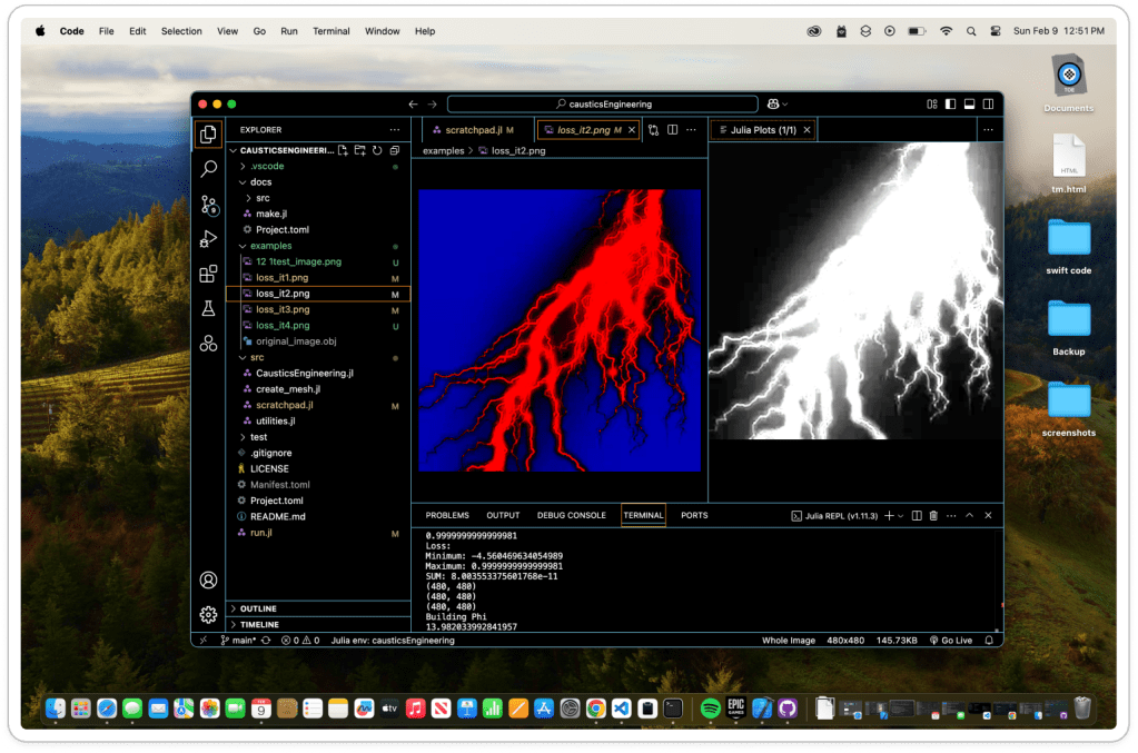 I hit run in the Julia terminal, and the code worked! The code produced 4 loss images and a .obj file for the lens.