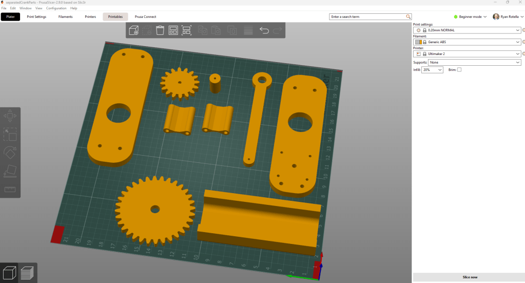First of all, the .stl file the author had shared was one big put-together crank that had a bunch of little parts. Printing that design as is would have taken forever on an ITP 3D printer and probably would have got us banned.