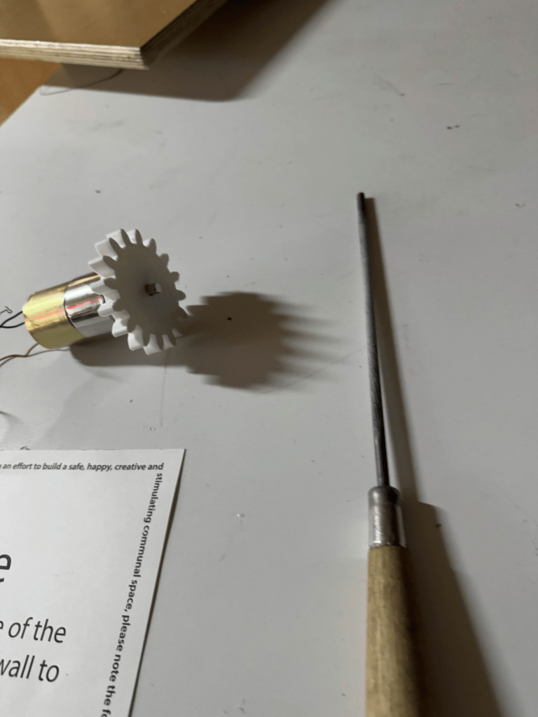 After failing to print a gear that fit our DC motor and eventually understanding Fusion more and more, we reached out to our friend and fellow ITP student, Fabri, to help us figure out this 3D and fabrication nonsense.