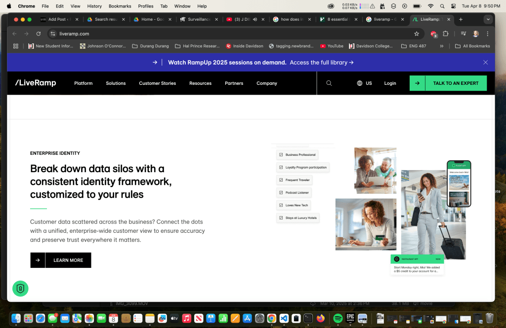 I don’t feel particularly pleased on being on a hashed list. This drives home Shoshana Zuboff’s point that customers and their data are the raw material for surveillance capitalism to process and serve to companies (the B2B model, Business to Business). Of course, upon researching, LiveRamp is a advertising analytics company that helps companies “connect the dots” about their customers. LiveRamp is a fitting name for a company that serves as a treadmill for consumers to walk faster and faster into more targeted ads that promote more and more gluttonous consumption online.