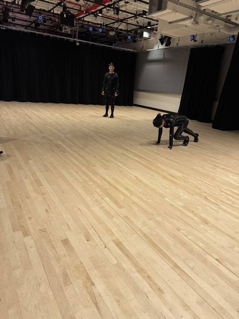 Last week, my group had its first Motion Capture session in the NYU Media Commons Ballrooms. The session was very fun and also informative about the technical hurdles that were referenced in class: calibrating the OptiTrack cameras, dealing with occasional hardware lag, and making sure to T-pose before and after every single take. That last step is essential, since a neutral pose is required to properly retarget movement data to a 3D model. Experiencing these processes firsthand gave me a better understanding of both the precision and the patience required to make motion capture sessions successful.