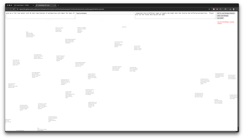 So what do we do? How do I make a social media or product or cyberspace that makes people kinder and happier? I feel inclined to cheat and say get off the computer and go outside. Aside from that, Professor Nicholas Smyth (by way of Postman) argues that we need to re-establish our cultural norms to constrain and direct technology. We need to develop a collective language for us to take action together. For the sake of these norms, I have made an embedding to determine if someone is normal. This way, we can moderate if someone doing something is acceptable and within the bounds of society or some freaky stuff that should direct them to a therapist/proper institution. It’s a start.