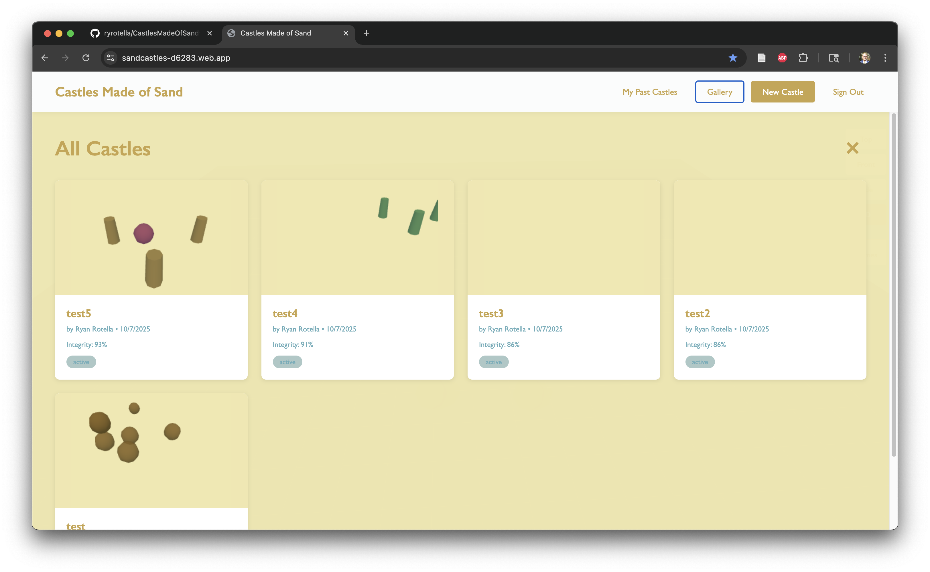 We all live in ecosystems. I am but a sandcastle, sculpting myself but moreso shaped by so many hands seen and unseen. And we will return to the ecosystem in some form inevitably as the force of decay/age/entropy/whatever guides us. The invisible impermanence and multitude of things inspired me to make an online sandbox to make sandcastles. These sandcastles will eventually fade away in real time (about 12 hours from making), whether a user is looking at it or not. After it decays, Claude Sonnet 4.5 will write a memorial for it, trying to preserve the memory. But even that might get swept away by whatever invisible hands lurk in Time.
